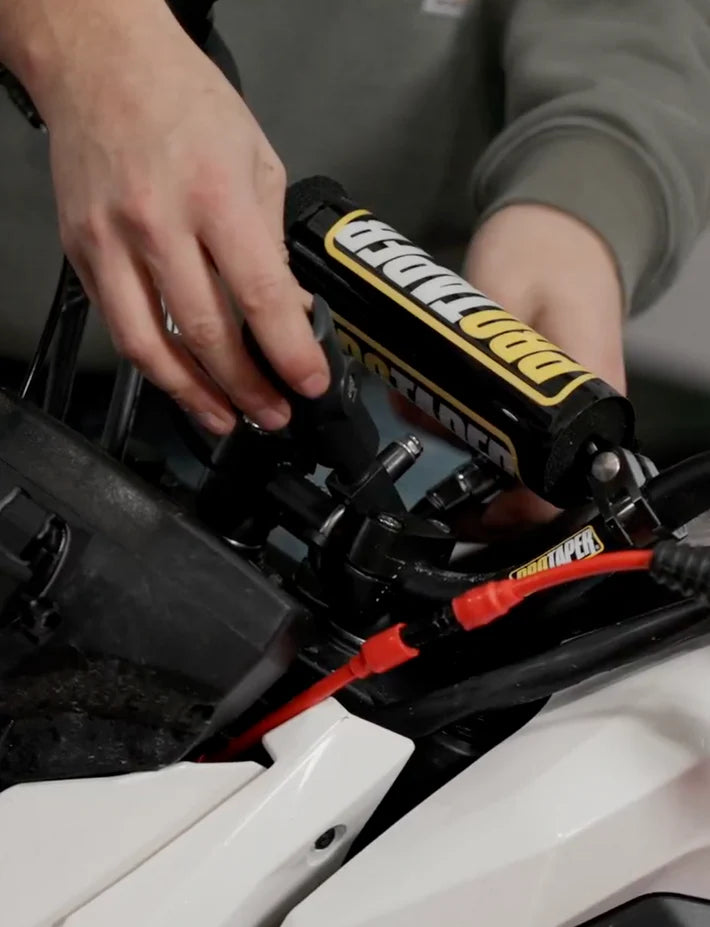 The GS Goods Motor CarPlay is built to work on any motorcycle. Its handlebar mount is designed for a secure fit on every bike, while the power connection hooks directly to your battery for universal compatibility.”